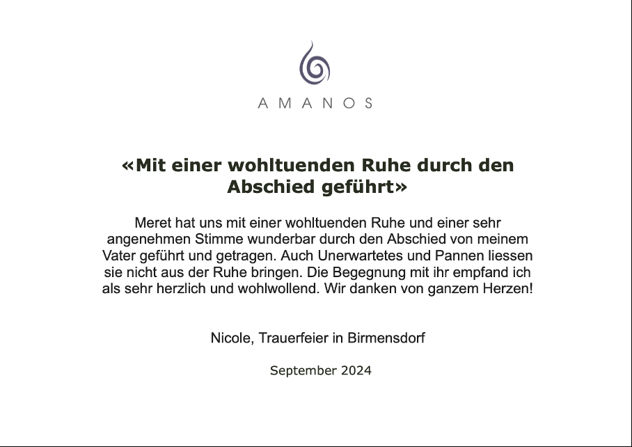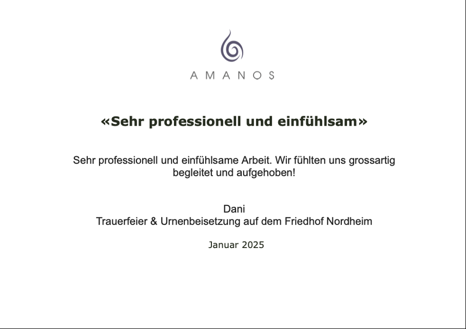 Ich liebe Menschen und ihre Geschichten. Es ist mir ein grosses Anliegen, feinfühlig und genau hinzusehen und hinzuhören und so ein Bild zu erhalten von den Menschen, die zurückbleiben und von denen, die uns verlassen haben.